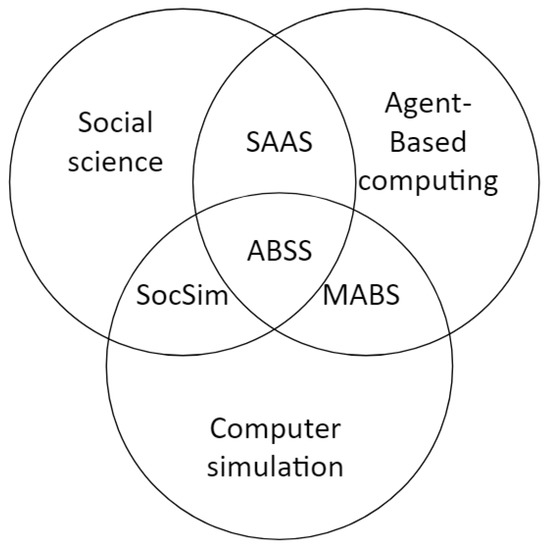 ABSS is a discipline that deals with the simulation of social phenomena by using multi-agent computational models. Therefore, ABSS is a combination of social sciences, agent-based computing and computational simulation. In recent times, other areas of study whose interests interact with each other have also emerged, as shown in Figure 1 [19].