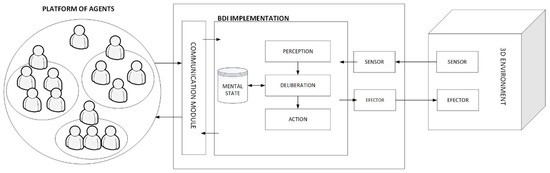 For the definition and implementation of the reasoning module of agents within the platform, the belief–desire–intention (BDI) model [26] has been selected. The behavior of the system is therefore determined by the mental attitudes of the agents. For this reason, it is fundamental to achieve a correct operation of the system when the deliberation processes are limited by the resources.