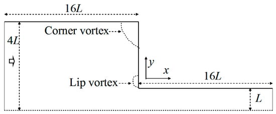 Figure 6 shows the flow domain of which the ratio between the downstream and upstream height is 1 to 4. The characteristic length L and the characteristic velocity U are the half height and average velocity at the outlet, respectively. A parabolic Poiseuille flow is set at inflow by