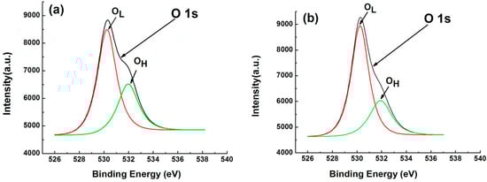 O 1s XPS spectra of different ZnO NPs: (a) Sample A; (b) Sample B.