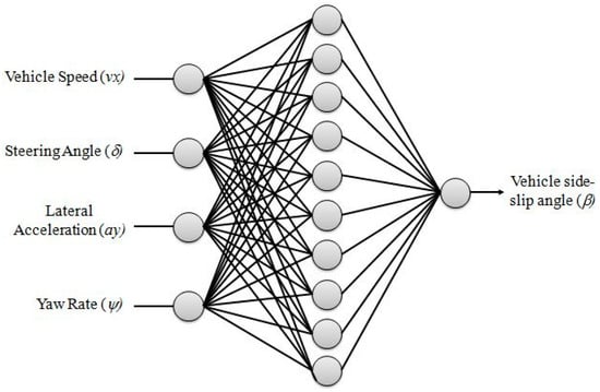 General layout of an ANN used for vehicle sideslip angle (VSA) estimation.