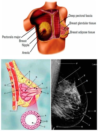 - Darlington, A. Anatomy of the Breast. In Digital Mammography: A Holistic Approach; Springer: Cham, Switzerland, 2015; Chapter 1; pp. 3–10. [Google Scholar]