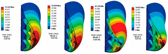 Likewise, in modal analysis, the prosthesis presents the behavior of the internal biomimetic structure, as shown in Figure 16.
