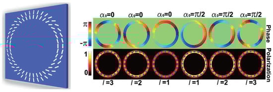 - Kang, M.; Chen, J.; Wang, X.L.; Wang, H.T. Twisted vector field from an inhomogeneous and anisotropic metamaterial. J. Opt. Soc. Am. B 2012, 29, 572–576. [Google Scholar] [CrossRef]