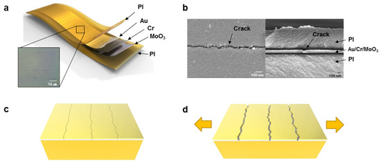 - WhanáChoi, Y.; MoonáKim, S. Crack-based strain sensor with diverse metal films by inserting an inter-layer. RSC Adv. 2017, 7, 34810–34815. [Google Scholar]