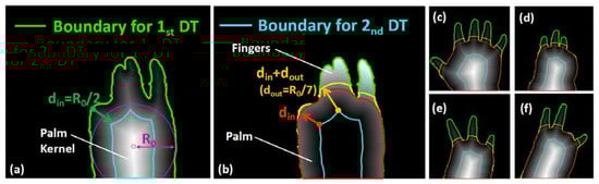 din is found and named as the palm kernel which would be used for the second DT. This process could also be comprehended as contracting the hand towards its inside to eliminate fingers while retaining the shape of the palm. The value of the contraction distance