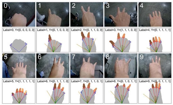 The proposed finger angle prediction and matching method is based on the intuitive features of the fingers, which brings the advantage that only very few training images (one for each person) are needed. In general, for machine learning algorithms, there should be training examples for each class, and they ought to be comprehensive and cover all circumstances to make the model robust. When adding a new class, new training images of this class need to be gathered. In the proposed method, however, by manually selecting and processing the specific features (fingers) for the specific target (hand gestures), the number of the required training image is reduced to only one. For the gesture “Back” and “Front” in the application section, they were recognized without the need of a new training set, but only based on the template of gesture “Five”.