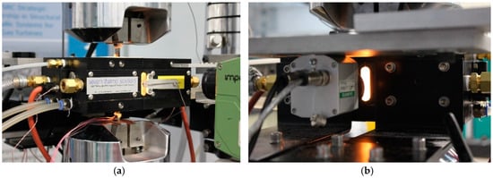 An alternative to pre-oxidation is to paint the surface to achieve an adequate emissivity. The use of thermal paints (TP) to measure, correct, and reduce the influence of surface emissivity values have been described in previous work []. These paints can be applied to encompass the entire specimen surface as a permanent coating. Alternatively, the paint can be applied in a single smaller location or a small spot to determine the emissivity by comparing the measured radiance temperature of this spot with that of the uncoated surface []. To avoid complications and inaccuracies with respect to radiation from nearby heat sources, such TPs should yield as high an emissivity value as possible, close to the emissivity of a blackbody, which is rated with a value of 1 []. Rolls-Royce plc developed a variety of novel thermal indicating paints and high-emissivity thermal paints, for use with gas turbine engine development which display an array of permanent colour changes in proportion with the temperature they are exposed to, and typically encompass a temperature range of 140–1330 °C [,]. The emissivity of the HE23 TP was found to be stable over a wide temperature range up to 1300 °C using pyrometers. This was maintained over a range of incidence angles as a result of its high stability and lower angular dependency on emissivity. Effectively, HE23 TP can deliver a constant, very high emissivity value across an extremely wide temperature range and has the potential to prove invaluable in delivering accurate temperature measurement over an extensive range of both high and low temperatures under non-invasive techniques [].