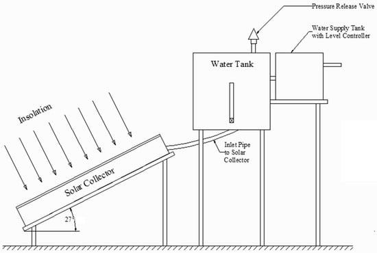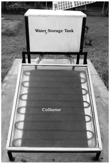 - Mahadi, M.S.-U.-R.; Hasan, M.F.; Ahammed, A.; Kibria, M.T.; Huque, S. Construction, fabrication and performance analysis of an indigenously built serpentine type thermosyphon solar water heater. In Proceedings of the 2014 3rd International Conference on the Developments in Renewable Energy Technology (ICDRET), Dhaka, Bangladesh, 29–31 May 2014; pp. 2–7. [Google Scholar]