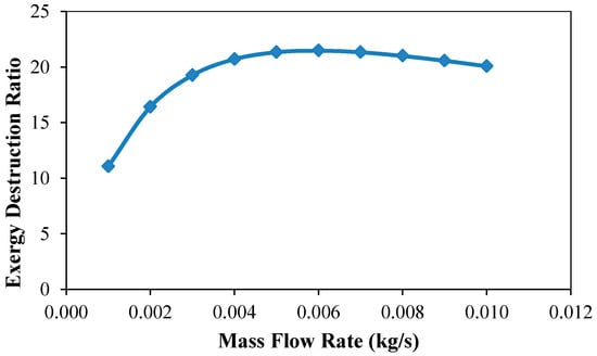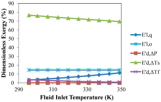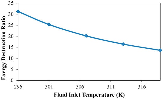 Variation of exergetic destruction ratio with fluid inlet temperature.