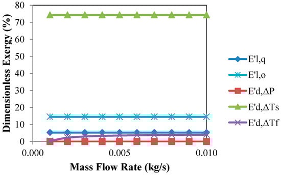 Controlling the mass flow rate in this type of passive heating system is not possible. The analysis shows that (Figure 8) the exergy efficiency decreases with the increased mass flow rate of water, while the thermal efficiency almost remains constant. A Similar pattern of exergy efficiency with respect to mass flow rate is reported by Zhong et al. [11].