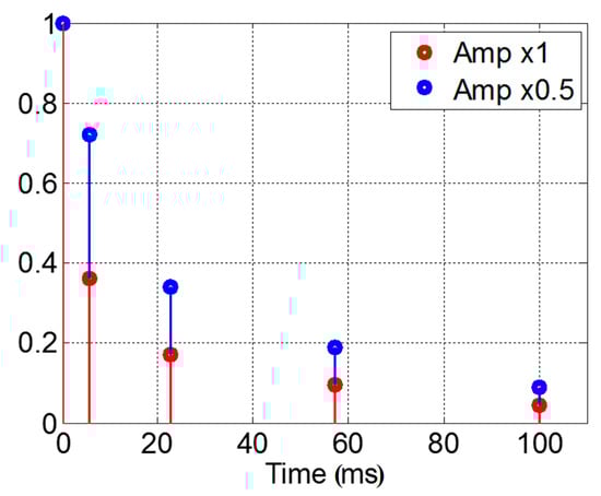 where and —amplitude functions of two rays arriving to the receiver with time lag T. Values of functions for this case belongs to range .
