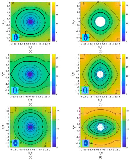 In order to facilitate reader understanding, firstly the TM and TE modes’ isofrequency dispersion curves for a pixel composed by an elliptical metallic patch printed on a grounded dielectric (i.e., without cross slot) are shown in Figure 3. The dispersion properties for different elliptical patch ratios (ea/eb) are compared.