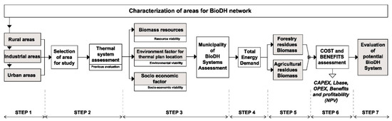 In this section is presented a methodology for evaluating the potential for forest/agriculture residues BioDH systems in a region. It evaluates the factors that affect to the viability of these systems though a top-down/bottom-up methodology integrating the renewable forest biomass energy source and complemented with agriculture residues. This global methodology is summarized in Figure 2.