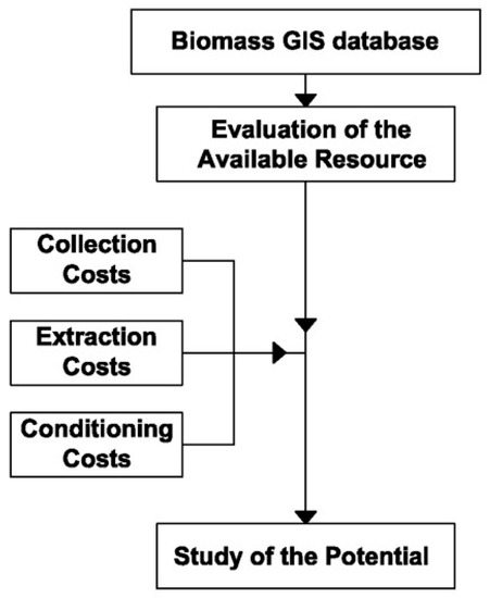 A procedure able to quantify and economically evaluate the available agricultural biomass in an area under study. To do this, it is recommended, where available, the use of GIS tools to determine available resources and then to use different experimental expressions to evaluate the costs of the different agricultural biomass. GIS tools can also provide economic data but they are usually less accurate than those provided by the experimental formulas adjusted to the specific cases (Figure 3).