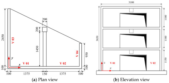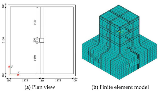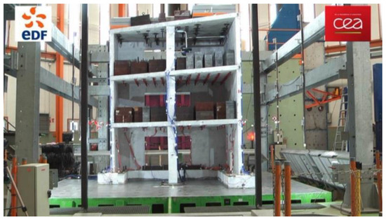 The evaluation of the inelastic response of reinforced concrete (RC) structures is essential for estimating the strength and damage of the structure under extreme loads such as earthquake, impact, and blast. In recent years, predicting the large deformation of RC structures has become more practicable, due to the advance of state-of-the-art numerical algorithms and computational power [1,2,3,4,5,6,7,8,9]. In recent decades, the feasibility of numerical methods for predicting the nonlinear behavior of RC structures have been assessed through many benchmark campaigns conducted on RC shear walls, columns, and buildings. In 1997, the Nuclear Power Engineering Corporation of Japan organized a series of shaking table tests on regular and U-shaped low-span RC shear walls [10,11]. The results demonstrated the necessity of improving the nonlinear analysis methods for shear walls when dealing with beyond design basis earthquake. From 1997 to 1998, the Commissariat à l’énergie atomique et aux énergies alternatives (CEA) of France performed SAFE (Structure Armées Faiblement Elancées) tests for the experimental characterization of the dynamic behavior of low-span shear walls [12,13]. The SAFE tests were pseudodynamic tests where shear cracking, failure modes, nonlinear load versus displacement diagrams, and wall ductility were confirmed under various earthquake loadings beyond the design level. Other experimental campaigns were conducted by the CEA, such as Conception et Analyse Sismique des Structures en Béton Armé (CASSBA) tests from 1990 to 1993 [14] and CAMUS tests from 1996 to 2002 [15]. These tests were shaking table tests that were conducted on multi-storey mock-ups with lightly reinforced concrete walls. These campaigns helped improve knowledge on the seismic behavior of RC structural systems and provided reference data for model development and validation [16,17]. In 2006, the Network for Earthquake Engineering Simulation (NEES) launched a blind prediction contest on the seismic response of a seven-storey full-scale RC building with cantilever structural walls [18]. The contest program examined the seismic behavior of RC structural systems with particular emphasis on the interaction among walls, slabs, and other gravity systems [19,20,21,22].