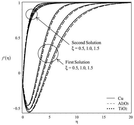 2) are among the nanoparticles reviewed in this study, and by performing a similarity transformation method, a set of ordinary differential equations has been reduced from the governing partial differential equations system. The corresponding ordinary differential equations were solved numerically by the shooting technique method in Maple software (Maple 16, Maplesoft, Waterloo, ON, Canada, 2003). Further, a method named stability analysis is performed to determine the stability of the obtained dual solutions.