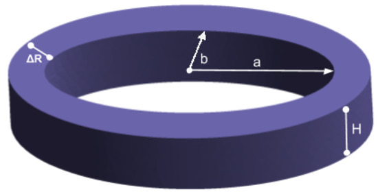 Five different ratios are proposed herein. The inner major radius a is always kept equal to 150 mm, while the minor inner radius mm with a wall thickness of mm. All rings share the same height H, equal to 75 mm.
