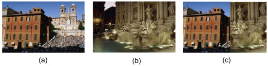Virtual image generation through genetic algorithm (GA). (a) and (b) are original images; (c) is the virtual image generated by combining image regions.