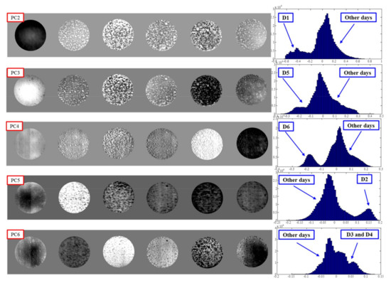 The second to sixth principal components (PC2 to PC6) images of A. flavus.