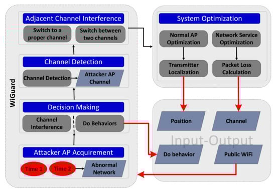 Our approach automatically detects when an attack is likely to happen by monitoring the network activities and runs the protection scheme if an attack is detected. Different from past works [12,13], which consider channel interference as detrimental and seek reasonable channel assignment methods to avoid channel interference [14,15,16,17], WiGuard exploits channel interference to prevent public WiFi from leaking users’ privacy. To transform the above idea into a practical, feasible system, we need to solve the following challenges: