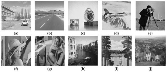 Test images: (a) Car1; (b) Car2; (c) Clock; (d) Airplane; (e) Cameraman; (f) Lena; (g) Barbara; (h) Venice; (i) Boat; (j) Goldhill.