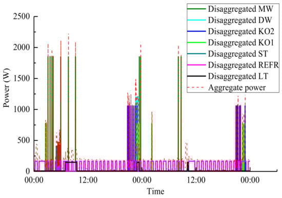 - Effectiveness of GSQF-APD algorithm. In the experiment, we use the aggregated active power readings of House 1 and House 2 from REDD dataset, and respectively select a period of time without any invalid intervals to demonstrate the disaggregation performance of the proposed algorithm. The disaggregation result of GSQF-APD for two typical days of House 2 is shown in Figure 2.