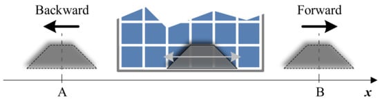 The shading object moves at a constant speed (4 cm/s) along the short edge of the PV module, as shown in Figure 6. The motion path is set between two points, A and B, respectively; the PV module is placed in the middle of the path. A motion cycle consists of a forward motion from A to B, a waiting time, and a backward motion from B to A.