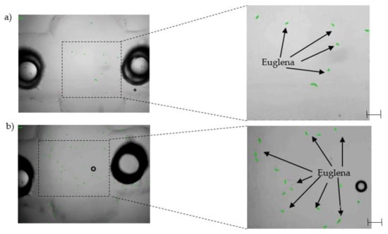 - Ozasa, K.; Lee, J.; Song, S.; Hara, M.; Maeda, M. Gas/liquid sensing via chemotaxis of Euglena cells confined in an isolated micro-aquarium. Lab Chip 2013, 13, 4033–4039. [Google Scholar] [CrossRef] [PubMed]