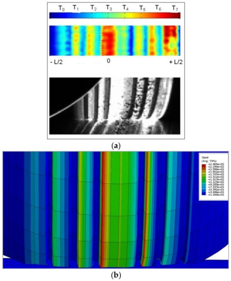 Figure 18a shows the global temperature evolution of tire tread at the end of testing. Figure 18b represents the experimental data for several frames of the thermal evolution of the tire tread for the third step, recorded for a period of 1.5 s of rolling. The present numerical model does not take into account neither the wear phenomenon nor the thermal exchange between the tire and the drum.