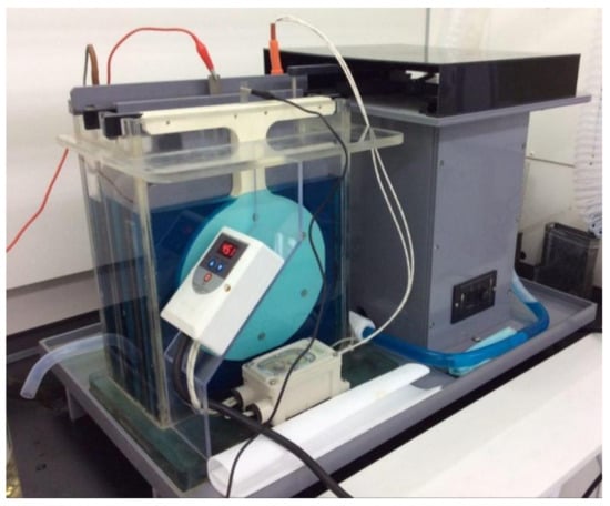 This study used fluorine compound passivation treatment as a release reagent under specific operating conditions to generate a passivation layer above the brass substrate. This passivation layer enabled the electroformed Pd–Ni alloy filter of the nebulizer to be easily released from the brass substrate. The micro-electroplating technique was used to electrodeposit metals into the structure, defined by a column-like pattern. Electroforming of the Pd–Ni alloy membrane filter using a fountain-type electroforming machine developed in this study and Pd–Ni electrolytic bath was effective in shrinking the holes to the desired diameter (Figure 1). The electrolytes flowing through the anode titanium net-type plate came into contact with the fixed brass cathode. The metal ion ratio of Pd to Ni was 1:1 in the electrolyte solution. The reaction temperature and pH were approximately 48 °C and 8, respectively. After the electroforming process, the brass substrate was removed and the residual photoresists were washed several times with a chemical solvent.
