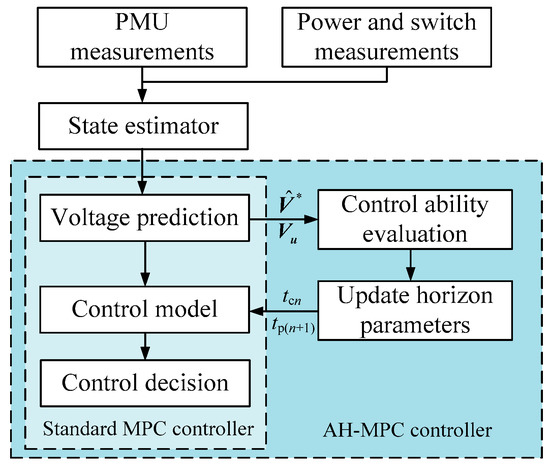 Structure of the voltage correction scheme based on adaptive horizon model predictive control (AH-MPC).