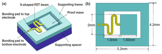 - Liu, H.; Lee, C.; Kobayashi, T.; Tay, C.J.; Quan, C. A new S-shaped MEMS PZT cantilever for energy harvesting from low frequency vibrations below 30 Hz. Microsyst. Technol. 2012, 18, 497–506. [Google Scholar] [CrossRef]