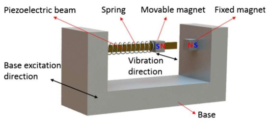 - Jeong, S.W.; Yoo, H.H. Bi-stable cantilevered piezoelectric energy harvester using springs. In Proceedings of the 23rd International Congress on Sound and Vibration: From Ancient to Modern Acoustics, Athens, Greece, 10–14 July 2016; Vogiatzis, K., Kouroussis, G., Crocker, M., Pawelczyk, M., Eds.; International Institute Acoustics & Vibration: Auburn, AL, USA, 2016. [Google Scholar]