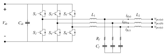 where is the PCC RMS phase voltage, is the PCC RMS line voltage, is the current ripple in , is the inverter switching frequency, is the power factor variation, is the desired attenuation and . A passive damping resistor is included in series with the filter capacitor to avoid resonance; its value is given by: