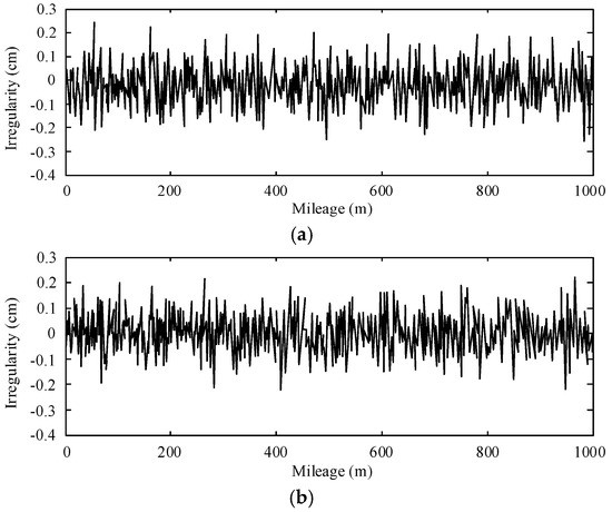 - Liu, Z.; Luo, S.; Ma, W.; Song, R. Application research of track irregularity PSD in the high-speed train dynamic simulation. In Proceedings of the International Conference on Transportation Engineering, Chengdu, China, 25–27 July 2009; pp. 2845–2850. [Google Scholar]