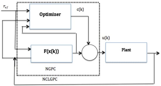 - The optimizer shown in the control scheme (Figure 1) constitutes the economic nonlinear closed loop paradigm. The predicted control moves are centered around an unconstrained stabilizing control law, , over the whole prediction horizon, and some additive degrees of freedom, , are added over a finite horizon to handle constraints. The resulting control is applied to the plant.