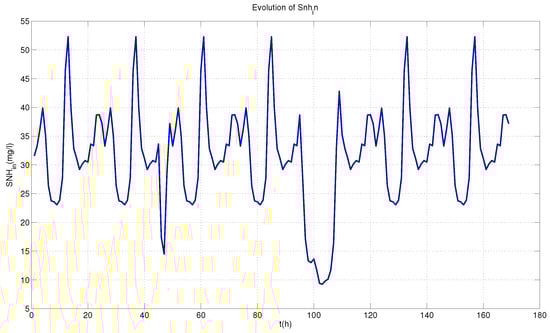 Those control strategies are evaluated and compared by means of simulations of the process model (Equations (35)–(42)) implemented in Matlab. The simulations have been carried out considering the influent profile described in Figure 3, Figure 4 and Figure 5 (storm weather scenario), and analogous influents for rain and dry weather described in the BSM1 specifications.