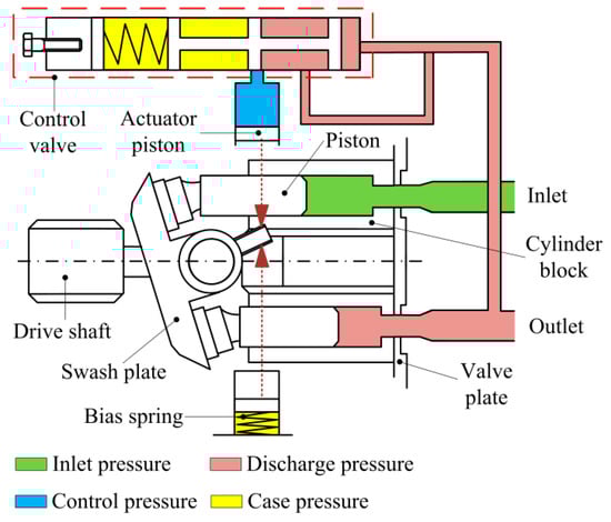 - Gao, Y.; Cheng, J.; Huang, J.; Quan, L. Simulation analysis and experiment of variable-displacement asymmetric axial piston pump. Appl. Sci. 2017, 7, 328. [Google Scholar] [CrossRef]