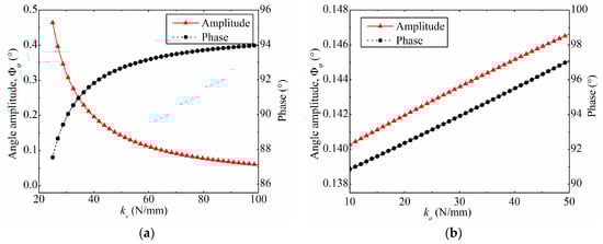 In order to demonstrate the influences of the variable displacement mechanism on the swash plate oscillation, the major parameters of the variable displacement mechanism are analyzed here. As the effects of the parameters inside the pump are difficult to measure directly, simulation analysis is a reasonably good method for this purpose. The simulation results of the amplitude and phase of the swash plate oscillation at the rotation speed 4000 r/min (600 Hz) are provided and discussed below.