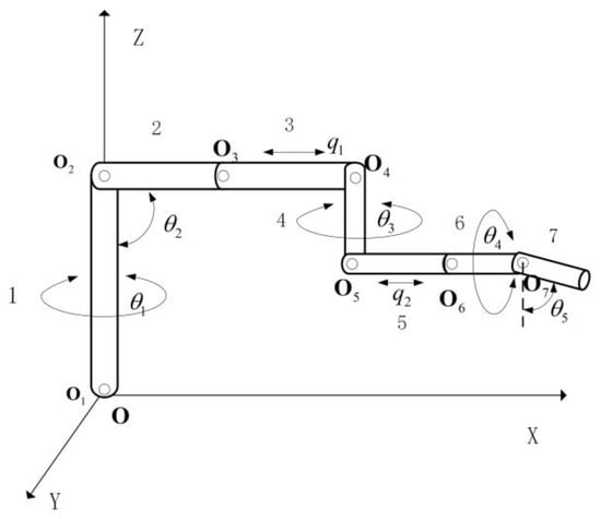 where, is the joints’ gravitational potential energy, is the joints’ elastic potential energy, is the elastic modulus of the corresponding joint, is the moment of inertia of the joint to the z-axis, and is the elastic deformation of the corresponding joint.