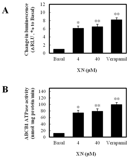 3.2. XN Was a Substrate of ABCB1 and Stimulated Its ATPase Activity
