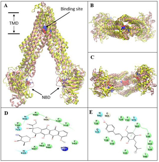 - Aller, S.G.; Yu, J.; Ward, A.; Weng, Y.; Chittaboina, S.; Zhuo, R.; Harrell, P.M.; Trinh, Y.T.; Zhang, Q.; Urbatsch, I.L.; et al. Structure of P-glycoprotein reveals a molecular basis for poly-specific drug binding. Science 2009, 323, 1718–1722. [Google Scholar] [CrossRef] [PubMed]