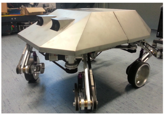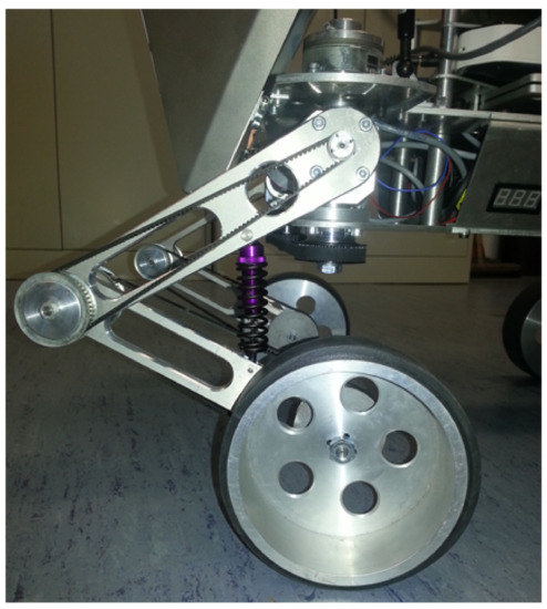 Each arm that holds a drive wheel disposes of a spring suspension intended to absorb impacts from uneven terrain and to balance possible different heights of the terrain (Figure 3).