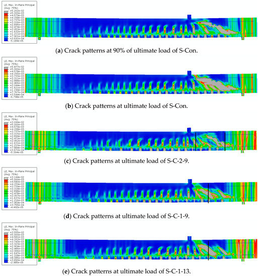 Finite element (FE) crack patterns of test slabs.