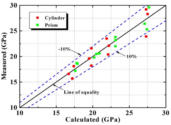 Figure 12 compares the calculated and measured elastic moduli. It shows that the measured results generally agree well with results calculated using Equation (11).