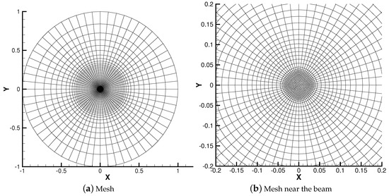 where m is the particle mass, is the Boltzmann constant, T is the temperature. The mesh for beam case has a round boundary, which is shown in Figure 10. In this case, 4032 mesh cells are used to discretize the computational domain.
