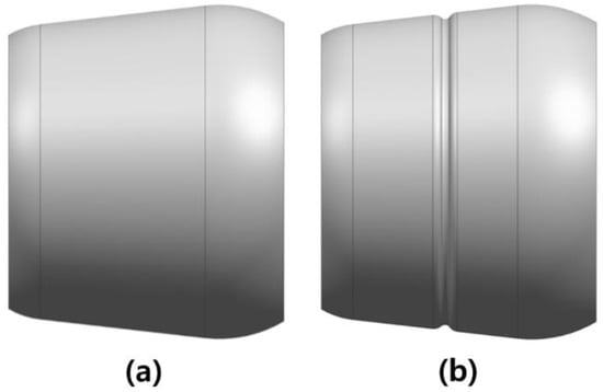 To ensure the reliability of the FE analysis, the expansion force results of the G1N and S1N groups were compared with those obtained from an FE analysis under the same conditions. The grooved and smooth ball models for the G1N and S1N groups were modeled using Rhino3D (Robert McNeel & Associates, Seattle, WA, USA) (Figure 2). A hexahedron with eight nodes was used for the Al tube model mesh, and a total of 22,523 nodes and 19,000 elements were produced. For FE analyses, a 1/20 cyclic symmetry condition was applied based on the x-axis to decrease the analysis time (DEFORM-3D, Scientific Forming Technologies Corporation, Columbus, OH, USA). The expansion ball was assumed to be rigid, and the expansion speeds were 1 m/s and 0.5 m/s.