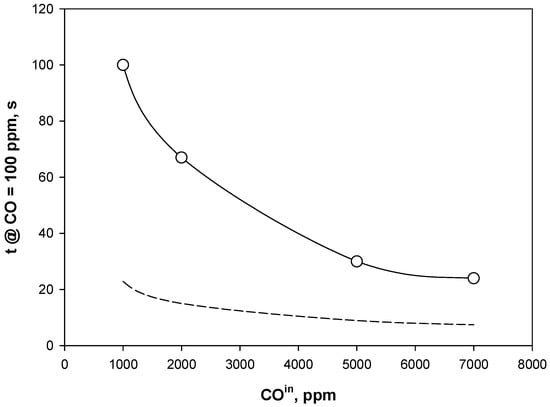 When the CO outlet concentration reaches 100 ppm, the feed is switched to COin = 0 and O2 is fed (5 vol %).