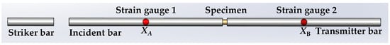 As shown in Figure 1, a typical Kolsky bar includes a striker bar, incident bar, transmitter bar, specimen, and strain gauge 1 and strain gauge 2 which are pasted at XA of the incident bar and XB of the transmitter bar, respectively.